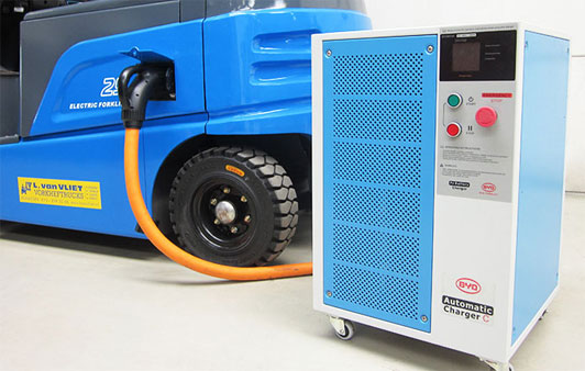 比亞迪叉車配備快速智能充電柜,可實(shí)現(xiàn)快速充電,并且隨充隨用,無需備用電池,同時解決鉛酸電池工作時形成酸霧,釋放氫氣,需建設(shè)專用充電房等難題。